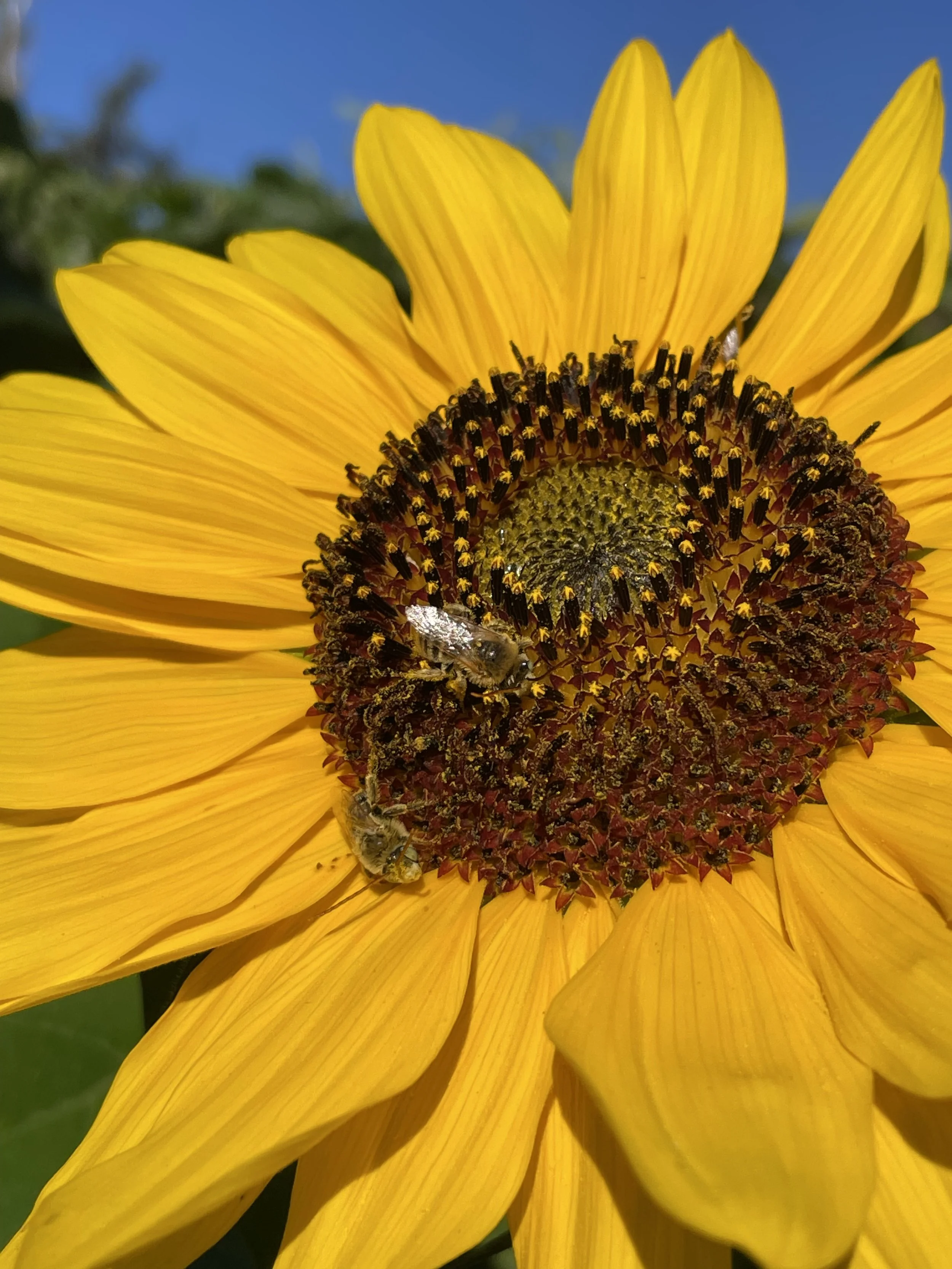 An abundance of pollen for the bees and an abundance of bees for me admire.